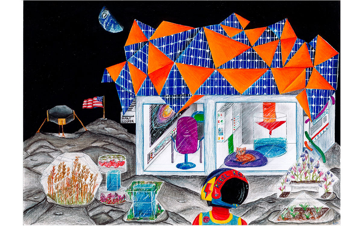 Der neunjährige Georg aus Fronreute-Staig (Baden-Württemberg) überzeugte die Jury mit seinem Bild „Homeschooling im Korallenhaus – Ich und meine Mama schauen den Fischen zu“ und belegte in der jüngsten Altersgruppe den zweiten Platz. Noah (10) aus Durlangen (Baden-Württemberg) wurde für sein Bild „High-Tech-Baumhaus“ mit dem ersten Platz in der Altersgruppe der Neun- bis Zehnjährigen ausgezeichnet. Die elfjährige Valerie aus Simbach am Inn (Bayern) erreichte mit ihrem Bild „Erde, Wasser, Luft – Drei Lebenswelten“ den dritten Platz unter den 11- bis 14-Jährigen. Sibel (17) aus dem bayerischen Herschfeld beeindruckte mit ihrem Bild „1945 – Die Zukunft in der Vergangenheit“ und belegte in der Altersgruppe der 15- bis 20-Jährigen den zweiten Platz.
